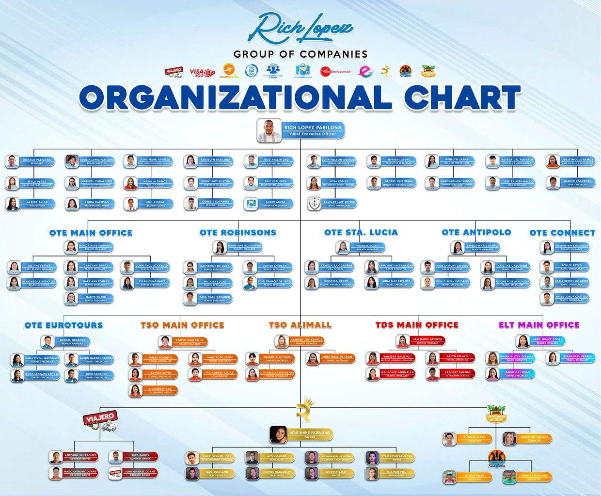 Explore the dynamic structure of the Rich Lopez Group of Companies — a powerhouse of passionate professionals dedicated to delivering excellence across all branches and brands. This organizational chart showcases the leadership, teamwork, and commitment that drive our mission forward.